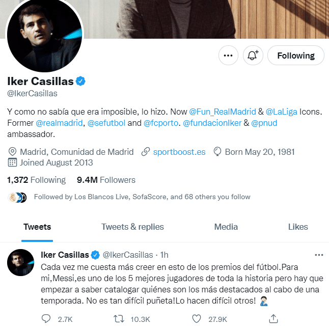 今天,梅西获得职业生涯第7座金球奖,皇马传奇门将卡西利亚斯在推特上对此表示不解。