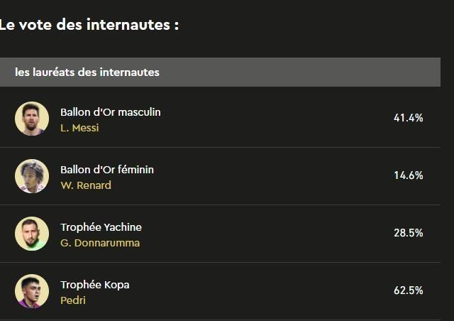 科帕奖得票率最高的则是佩德里(62.5%)。