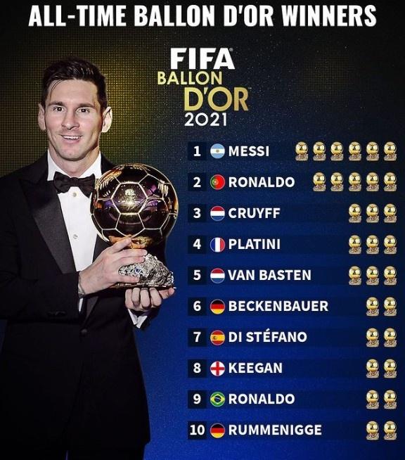 获得金球奖的次数方面,梅西6次夺得金球奖排名榜首,而第二的是C罗的5次,排名第三的是荷兰传奇克鲁伊夫、范巴斯滕和法国传奇球星普拉蒂尼,他们都拿到了3次金球奖。随后是德国传奇球星贝肯鲍尔、鲁梅尼格、西班牙传奇球星迪斯蒂法诺、英格兰球星凯文基冈和巴西球星罗纳尔多,他们各自斩获了2次金球奖。而剩下的球员,最多斩获1次金球奖。