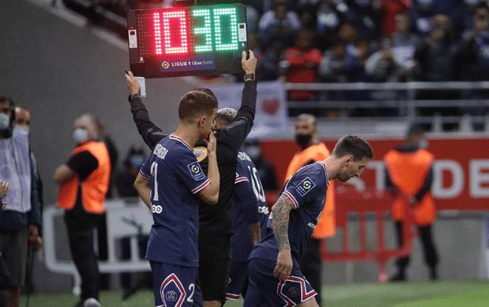 24直播网8月30日讯 今天梅西完成了自己在大巴黎的首秀,球队客场2-0击败兰斯的比赛第65分钟,梅西换下大巴黎登场,迎来里程碑时刻。比赛中梅西虽然没有恢复到自己的最佳状态,0球0助攻,但他被侵犯3次,是全场最多的,足以看出梅西在上场之后被对手重点照顾。比赛中梅西和姆巴佩、迪玛利亚多次连线,在领先的情况下队友也想要好梅西,让他更好地在赛场上找到感觉。