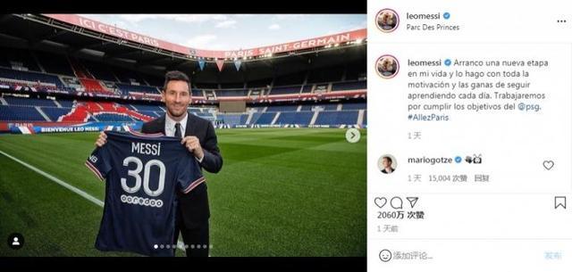 24直播网讯 北京时间昨天,梅西在出席了巴黎的新闻发布会后,更新了自己加盟巴黎圣日耳曼的Instagram动态,目前这条这条动态的点赞数已经突破了2000万。