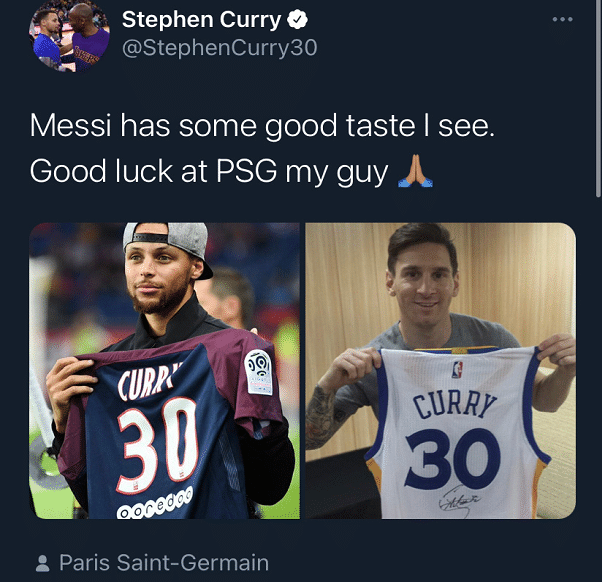 梅西身穿30号球员,引来了NBA巨星、也是梅西好友库里的关注,他在社交媒体上表示:“我觉得梅西品味不错,祝你在巴黎好运,伙计! ”