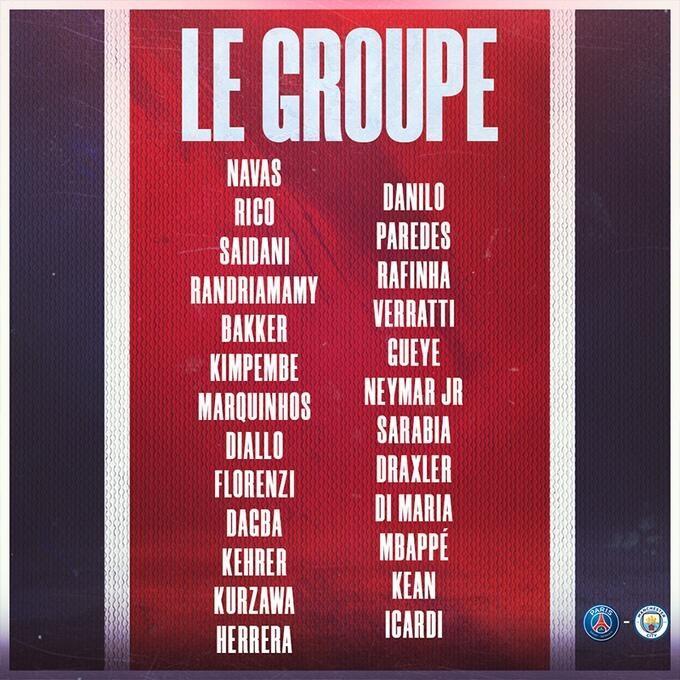 24直播网讯 北京时间4月29日凌晨3:00,巴黎将在主场迎来欧冠半决赛首回合与曼城的较量。赛前, 巴黎对阵曼城大名单:内马尔、姆巴佩领衔,迪马利亚、伊卡尔迪、马尔基尼奥斯等人在列。