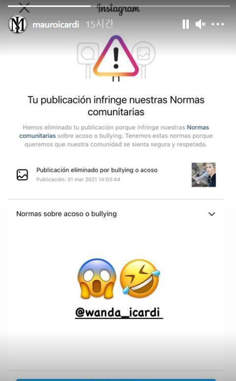 对于官方删除他的这条动态,伊卡尔迪也表示很无奈,并且艾特了旺达。