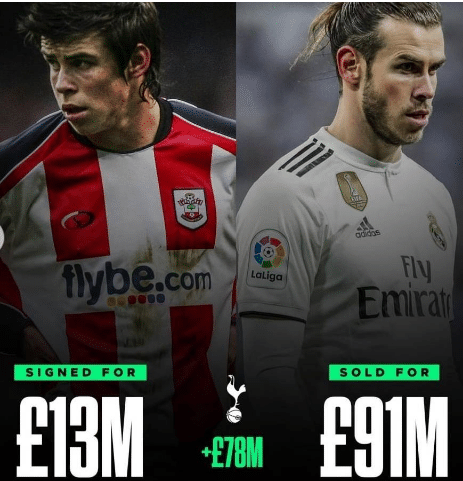 第五是登贝莱,多特当初签下登贝莱的时候,花费了1400万英镑,但是一年之后,登贝莱就以1.26亿英镑的价格转会巴萨,多特净赚1.12亿英镑。而第六是博格巴,当初尤文签下博格巴的时候是免签,结果几年后,以9500万英镑的价格把博格巴卖回了曼联。第七是贝尔,当初热刺签下贝尔只花费了1300万英镑,而他们最终把贝尔卖出了9100万英镑的高价,列维因此净赚7800万英镑。