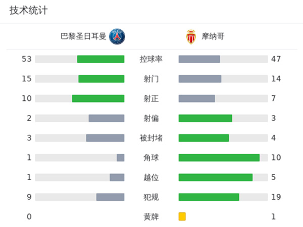 最终全场比赛结束,巴黎5-2摩纳哥。