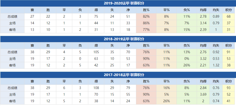 巴黎圣日尔曼近年成绩: