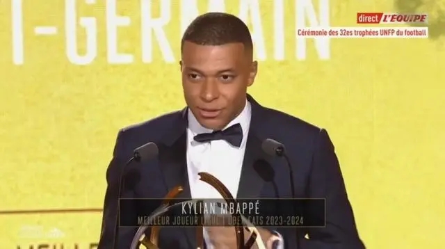 法甲官方账号在社交媒体上晒出姆巴佩5次当选最佳球员的领奖照片,并配文:“五星姆巴佩。”
