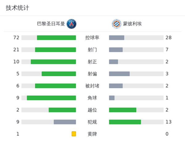 全场比赛结束,最终巴黎圣日耳曼3-0蒙彼利埃。