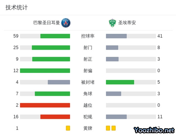 终,巴黎主场2-1击败圣埃蒂安,本赛季至今17轮法甲全部保持不败,7分领跑积分榜。
