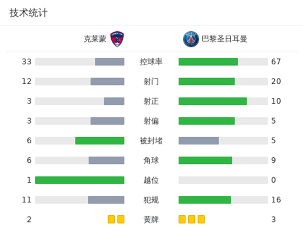 巴黎0-0克莱蒙 姆巴佩中柱+假摔染黄G-拉莫斯失单刀