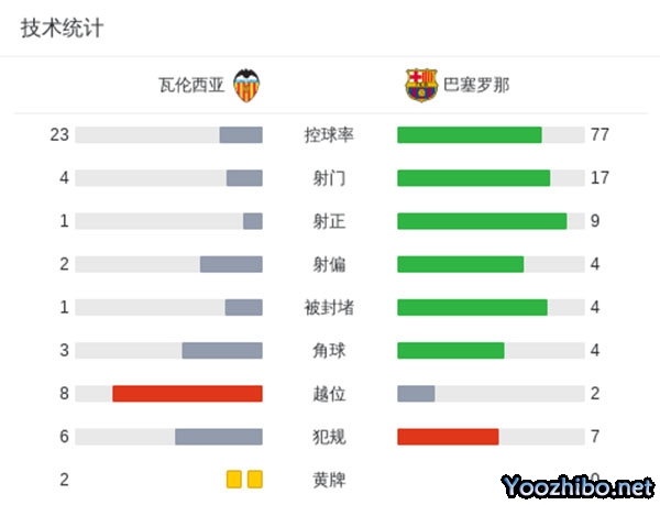 最终,全场比赛结束,巴塞罗那客场5-0大胜瓦伦西亚,晋级四强。