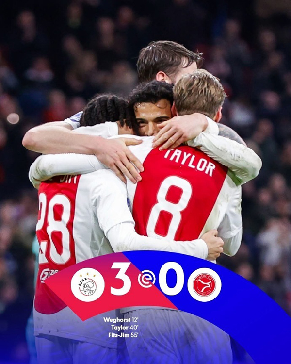 此役菲慈佔-天乐重返球队先发,而上半场,阿贾克斯依靠韦格霍斯特和肯尼思-泰勒的进球,取得2-0领先。易边再战,第55分钟,全场最精彩的进球出现了。