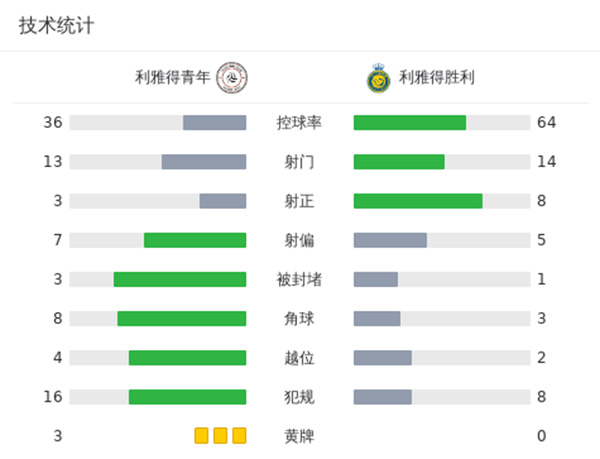 第90分钟,卡拉斯科大力射门被门将扑出,巴赫布里补射为利雅得青年人扳回一球,利雅得胜利4-2领先↓