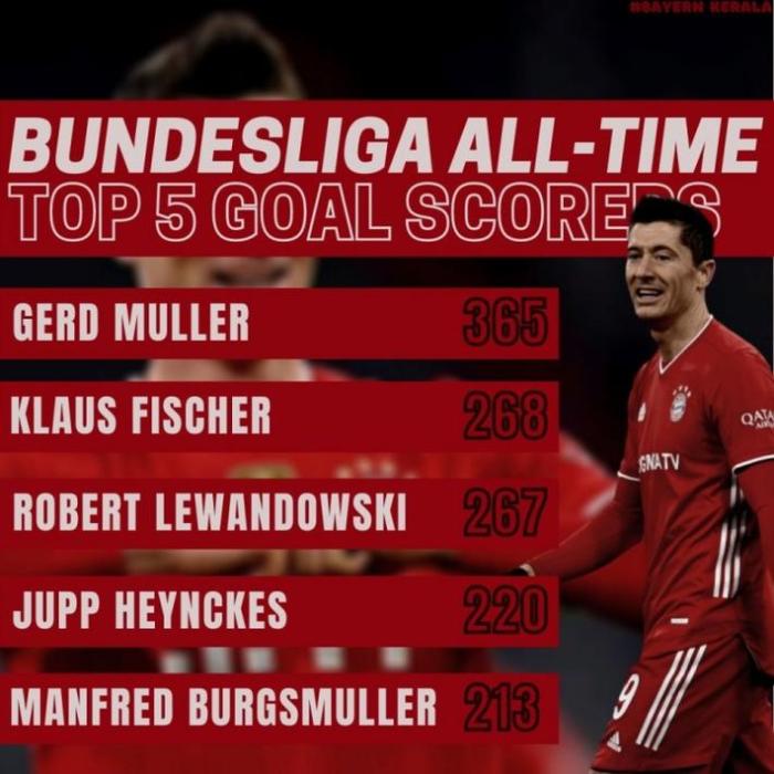 德甲历史射手榜前五: