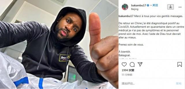 24直播网讯 北京时间3月5日凌晨,效力于中超豪门北京国安的外援巴坎布,在个人社交账号上发布消息,表示自己感染了新冠,目前正在接受隔离。巴坎布写道:“我在中国接受了检测,结果显示为阳性。目前我正在医疗中心接受隔离。我没有症状,有医院的员工看护着我。上帝保佑,目前一切都好。”