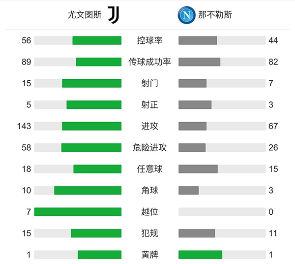 查看:尤文图斯vs那不勒斯 全场录像技术统计: