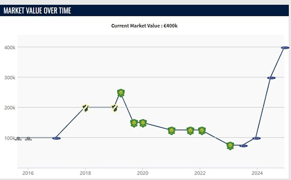 24直播网讯北京时间12月16日,德国转会市场更新了挪甲球员的最新身价。其中备受关注的侯永永最新身价涨至40万欧元,这也创造他本人职业生涯新高。