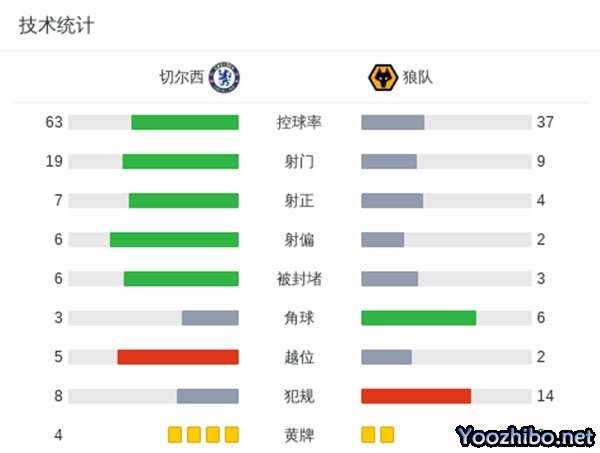 最终,切尔西3-1击败狼队,终结5轮不胜,升至积分榜第4名。