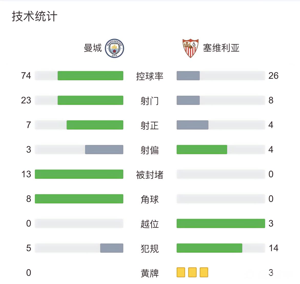 最终曼城1-1塞维利亚,根据赛事安排双方直接进入点球大战。
