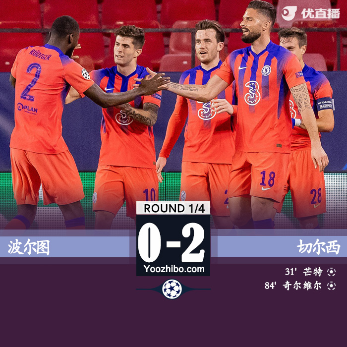 24直播网4月8日讯 北京时间04月08日星期四03:00,欧冠1/4决赛首回合波尔图迎战切尔西。上半场比赛,若日尼奥助攻,芒特破门,切尔西半场1-0领先波尔图,蓝军上半场仅仅一脚射门就取得进球。下半场,普利西奇射门中框,奇尔维尔扩大比分。最终,波尔图0-2不敌切尔西。两队4月14日的次回合交锋,仍将在皮斯胡安球场进行。