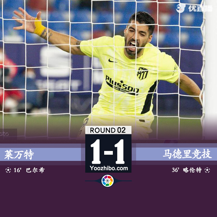 24直播网2月18日讯 北京时间2月18日02:00,西甲第2轮进行一场补赛,马德里竞技客场挑战莱万特。上半场,巴尔迪帮助莱万特取得领先,略伦特远射将比分扳平。下半场,科雷亚补射空门不进。最终,马德里竞技1-1客场憾平莱万特,11轮不败,少赛一场6分优势继续领跑积分榜。