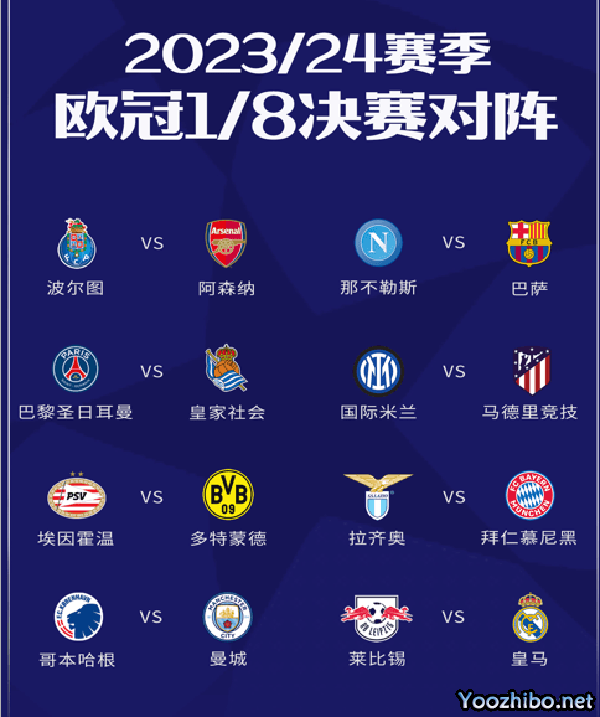 欧冠1/8决赛对阵:
