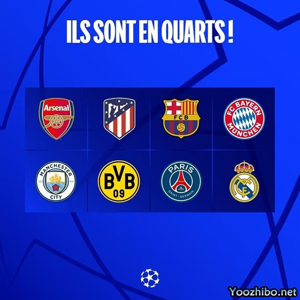 本赛季跻身欧冠8强的8支球队,分别为曼城、皇马、拜仁、巴萨、阿森纳、多特蒙德和马竞,全部来自欧洲五大联赛,其中西甲3队、英超、德甲各2队,法甲1队。意甲联赛球队,则已经在本赛季欧冠全军覆没。