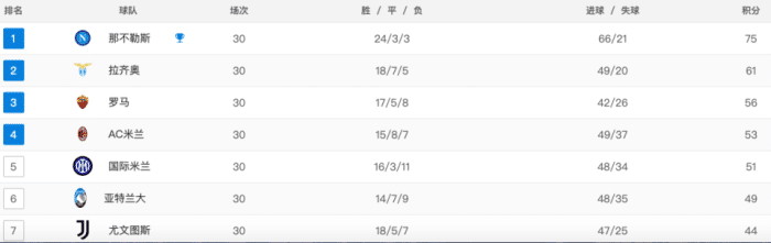 目前,那不勒斯在意甲积分榜上一骑绝尘领跑。比第2名的拉齐奥高出了14分,夺冠只是时间问题。而拉齐奥如果赛季末期不崩盘,单线作战的他们也大概率能确保一个欧冠名额。剩下两个2名额,将在罗马、尤文、AC米兰和国际米兰之间展开竞争。