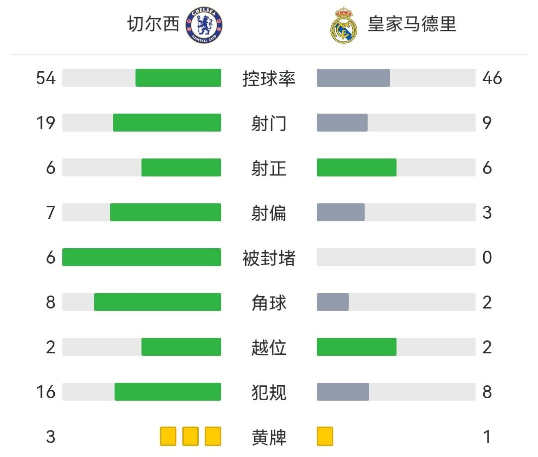 最终皇马客场2-0战胜切尔西,总比分皇马4-0双杀切尔西晋级四强。