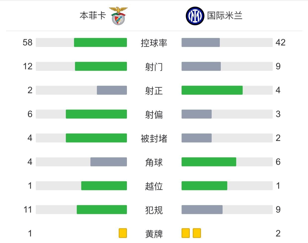 最终国米客场2-0击败本菲卡,双方次回合比赛将于北京时间4月20日凌晨3时进行。