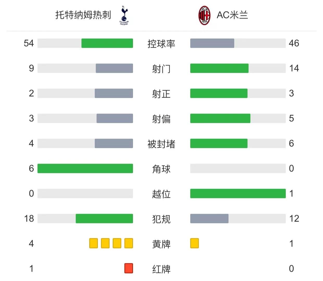 24直播网讯 :北京时间3月9日凌晨,欧冠1/8决赛次回合,托特纳姆热刺主场对阵AC米兰,本场比赛主裁判是蒂尔潘。上半场,埃默松推射被没收,梅西亚斯抽射打偏。下半场,卜拉欣-迪亚斯小角度抽射被挡出,赫伊别尔劲射被扑出,克里斯蒂安-罗梅罗累计两黄被罚下,凯恩头球攻门被迈尼昂扑出,奥里吉挑射中柱,最终,热刺0-0米兰,米兰以总分1-0晋级,时隔11年再度闯进欧冠八强。