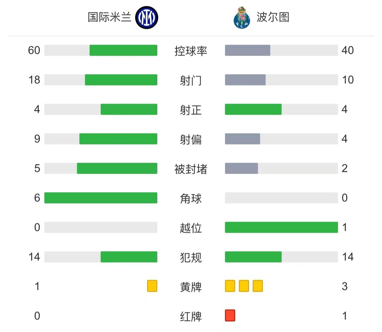 全场比赛结束,国际米兰1-0波尔图!