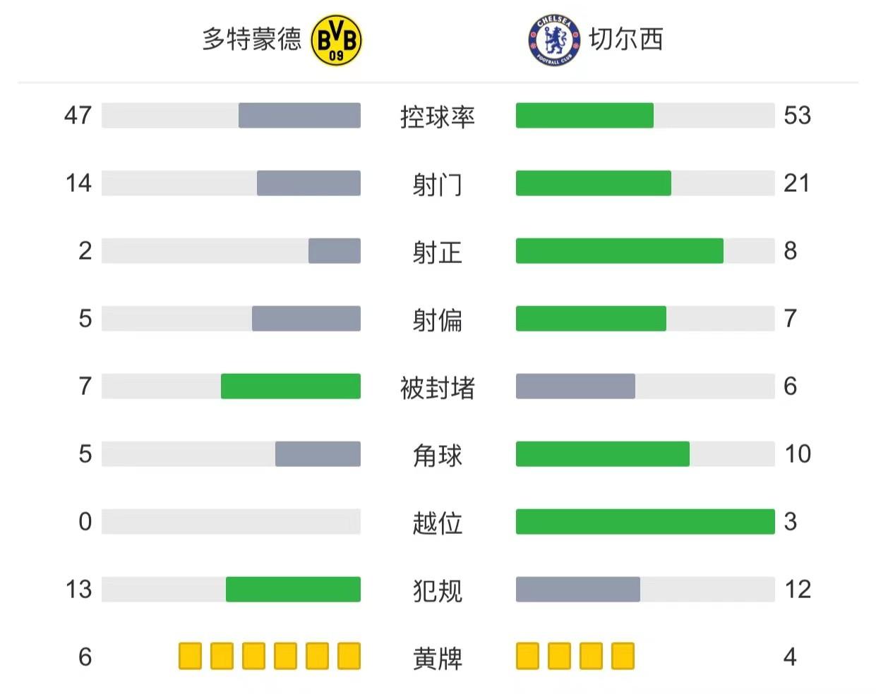 全场比赛结束,最终多特蒙德1-0击败切尔西!