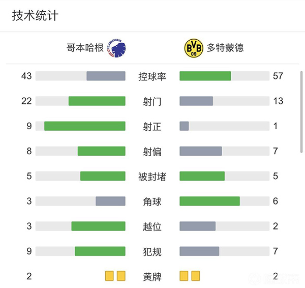 24直播网讯:北京时间11月3日凌晨4点,欧冠小组赛第6轮一场焦点战役在帕尔肯体育场打响,哥本哈根对阵多特蒙德,本场比赛当值主裁判为艾莉亚。上半场,小阿扎尔禁区内抽射破门。随后,克拉松倒三角助攻哈拉尔德松推射扳平比分。下半场,穆科科替补登场射门中柱而出。全场比赛结束,多特蒙德1-1哥本哈根,大黄蜂各项赛事连续5场保持不败。