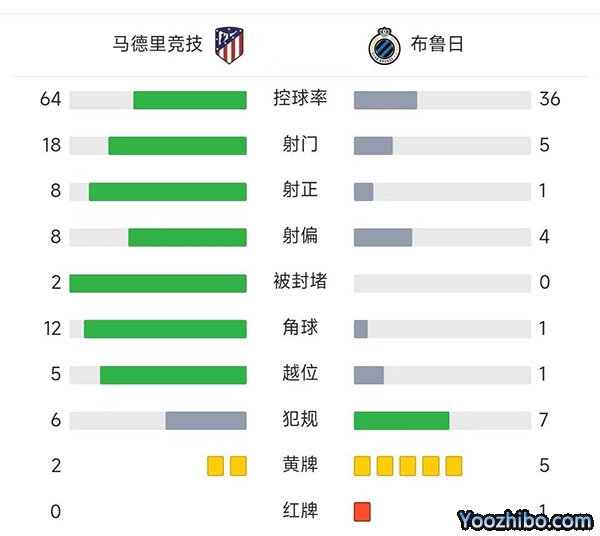 全场结束,马竞0-0战平布鲁日。