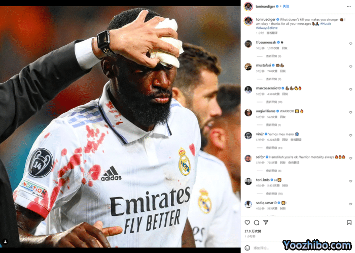 记者透露,吕迪格的伤口缝了20针,他会在明天或后天接受进一步的检查。