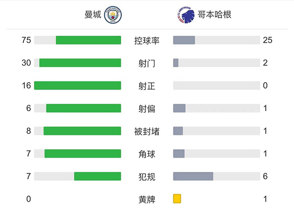 24直播网讯:北京时间10月6日3:00,欧冠小组赛第3轮,曼城在主场阿提哈德球场对阵哥本哈根,本场比赛主裁判是多纳塔斯。上半场,坎塞洛助攻哈兰德破门,伯纳多-席尔瓦小角度打门中柱,京多安远射被扑,哈兰德补射破门梅开二度,塞尔希奥-戈麦斯远射造乌龙。下半场,马赫雷斯点射破门,阿尔瓦雷斯破门取得欧冠处子球,最终,曼城5-0大胜哥本哈根,本场比赛结束后,哈兰德22场欧冠比赛已打进27球,并且欧冠生涯已攻破11支不同球队的大门。