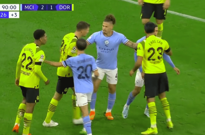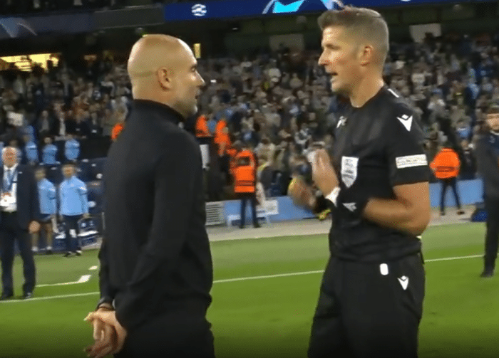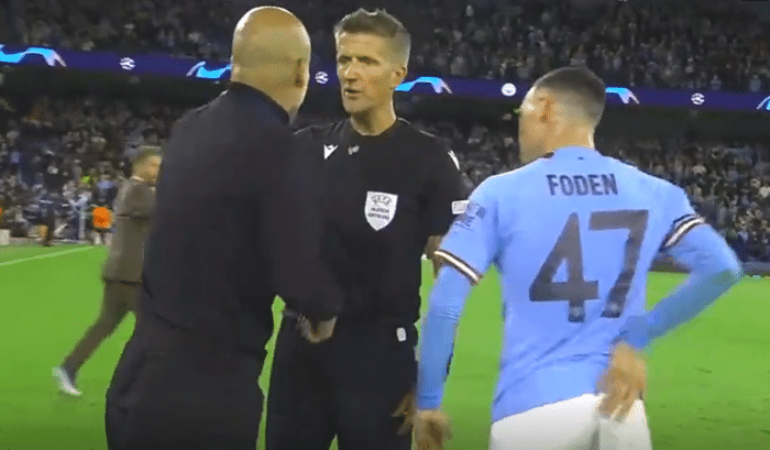 上半场的比赛临近结束的时候,两队爆发了冲突,福登带球突破被对手放倒,但是裁判没有任何的吹罚,这也是导致了后来的冲突,此后福登放倒了对方的球员,最终两队球员聚集在一起相互推搡,发生言语冲突,好在是裁判及时制止了双方球员,冲突这才没有进一步的扩大,本场比赛结束后,瓜迪奥拉十分愤怒的找到裁判讨要说法,由于言语过于激烈,裁判向他出示了黄牌,但是此后画风突转,愤怒的瓜迪奥拉秒怂变成小可受,他抱住裁判示好,随后背着手与裁判进行交流,像极了小学生背手挨训,冰火两重天,给裁判整的有点不会了。
