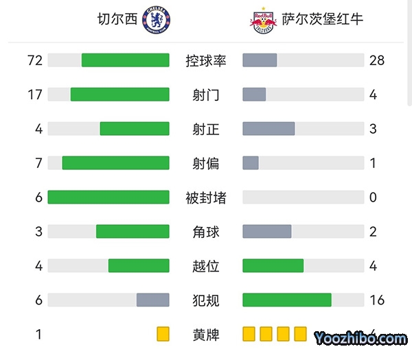 全场比赛结束,切尔西1-1战平萨尔茨堡。