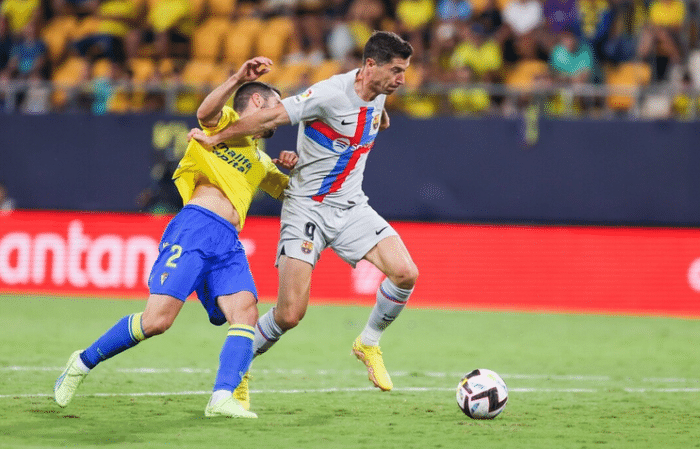 巴萨此役的进球从第54分钟开始,拉菲尼亚策动进攻,加维底线传中,门将扑出,德容完成了补射破门;比赛第57分钟莱万替补登场,比赛第64分钟,莱万在快攻过程中包抄空门,巴萨2-0领先;比赛第85分钟,莱万尽显大哥风范,单刀选择助攻替补登场法蒂打空门,巴萨3-0领先;比赛第90+1分钟,莱万反击过程中助攻同样替补登场的登贝莱破门,巴萨4-0大胜加的斯。