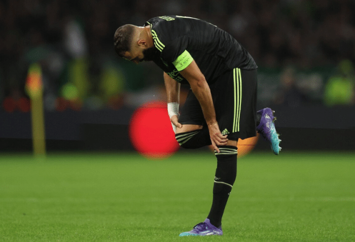 皇马的问题比较直接,本泽马成为隐患的点是老迈和伤病,由于今夏没有得到姆巴佩,皇马在进攻端的支撑点被认为不太够,维尼修斯和罗德里戈都还需要成长,暂时不具备一人扛起进攻大旗的能力。本场比赛,皇马主力尽出,莫德里奇、本泽马“玄冥二老”终究没能逃过岁月的侵蚀,密集赛程中伤病概率大增,其中连续6场首发的本泽马在比赛第30分钟因膝盖受伤提前退场。本泽马本赛季各项赛事前5场已经打进了4球助攻1次,保持鼎盛状态,是准金球先生,突然伤退对皇马的进攻影响巨大。