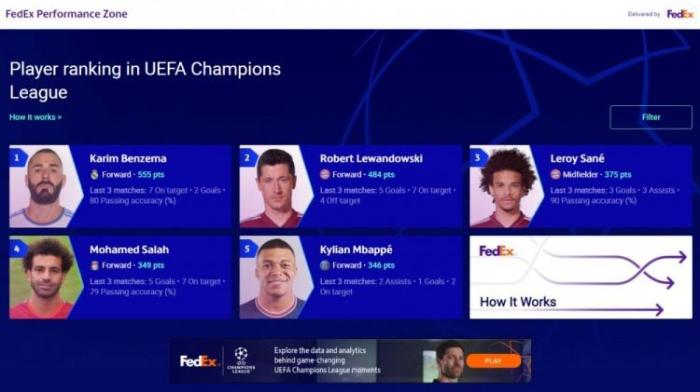 本泽马凭借优异的表现助皇马晋级四强,他目前以9场555分高居第一,对切尔西的两场比赛法国前锋打进4球,首回合比赛戴帽。莱万以10场484分位居第二,不过拜仁出局后,他的积分止步于此。萨内以375分排名第三,萨拉赫以349分位居第四。
