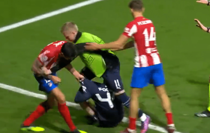 而双方的冲突也一直持续到赛后的球员通道。双方爆发大规模口角,福萨里科还朝拉波尔特扔东西。曼城球员也在安保的护送下离场,可以说是本赛季欧冠最不和谐的一幕。赛后,很多网友批评马竞,称通过这两场比赛,看到了马竞并不是铁血,而是真的太脏了。