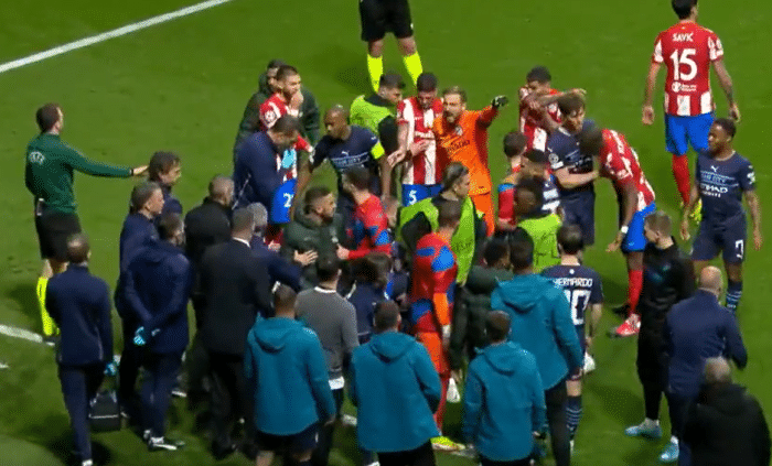 24直播网04月14日讯 ,欧冠4强正式出炉。利物浦3-3战平本菲卡,总比分6-4淘汰对手晋级。而曼城则是0-0战平马竞,总比分1-0淘汰对手进入欧冠4强。曼城和马竞的比赛,虽然单场最终比分是0-0,但双方最后阶段爆发激烈冲突,并且一直延续到球员通道,场面非常火爆。