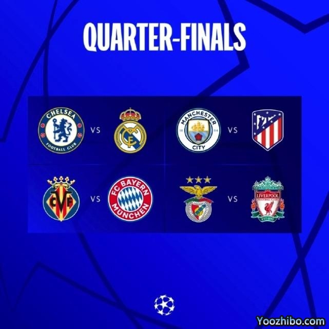 24直播网讯 欧冠1/4决赛抽签在今天晚上举行,我们先来看看本次进入欧冠八强的球队,西班牙联赛的马德里竞技,德甲联赛的拜仁慕尼黑,葡萄牙联赛的本菲卡,英超联赛的切尔西,英超联赛的利物浦,英超联赛的曼城,西甲联赛的皇家马德里,西甲联赛的比利亚雷亚尔。