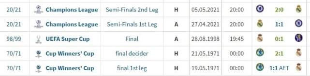 尽管皇马在欧冠对阵其他欧洲豪门大多数战绩上都占据优势,但唯独切尔西,却是“银河战舰”啃不下的硬骨头。在欧冠历史上,皇马与切尔西有过5次交手,皇马2平3负至今不胜。