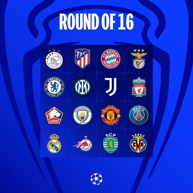 小组第一:曼城、利物浦、阿贾克斯、皇家马德里、拜仁慕尼黑、曼联、里尔、尤文图斯