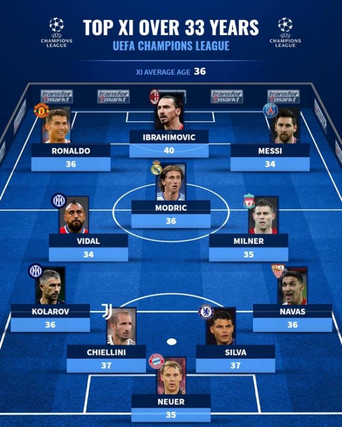 好球直播吧讯 欧冠比赛在如火如荼的进行,而德国权威媒体《转会市场网》也趁着欧冠的热度盘点了欧冠赛场上33岁以上球员的最佳阵容,这套阵容里面的球员年龄虽然大了,但是实力依然不俗,都是目前五大联赛赛场上数一数二的球星。同时,他们还盘点了欧冠赛场上U21最佳新秀阵容,不知道您认为这两套阵容哪一套更强呢?话不多说,一起看阵容。