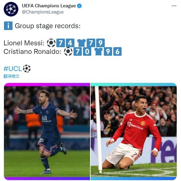 欧足联在官推上晒出了梅西和C罗在欧冠小组赛的数据,其中梅西在欧冠小组赛踢了79场比赛,打进74球,场均0.94球。而C罗的数据也不差,他参加了96场欧冠小组赛,打进了70球,场均0.73球,不过C罗的效率比梅西低了很多。可见,在欧冠小组赛的比赛中,梅西的表现是更好的,当然在欧冠淘汰赛的比赛中,C罗的进球是最多的,这一点是任何人都无法否认的。